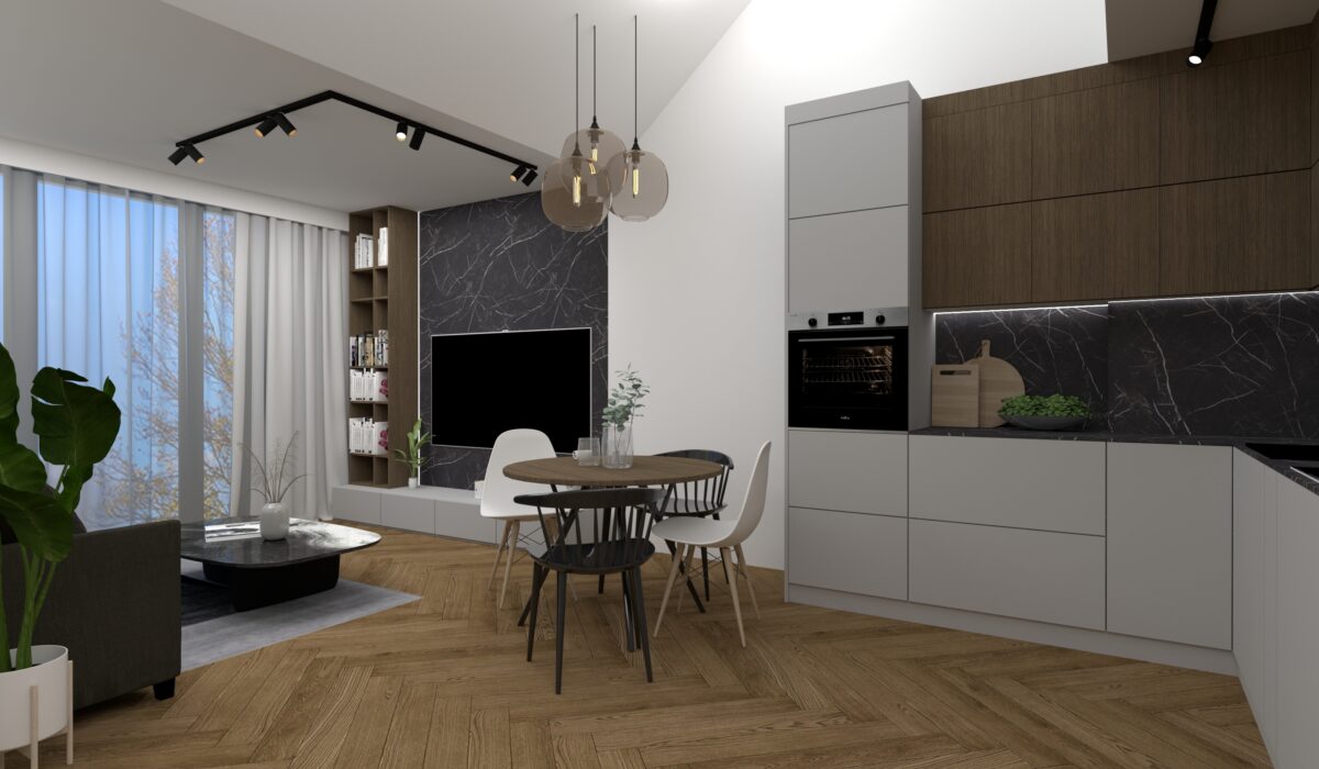 Mieszkania są przestronne, z dużą powierzchnią, która zapewnia komfort i swobodę użytkowania. Rozległe przeszklenia w każdym z mieszkań wpuszczają mnóstwo naturalnego światła, tworząc jasne i przytulne wnętrza.